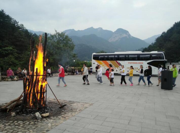 晚上大家在篝火前載歌載舞,笑談風(fēng)生。將平時工作的壓力與生活的煩心時統(tǒng)統(tǒng)拋之腦后,盡情享受此刻的歡愉,使一直繃著的弦在此刻得到釋放,徹底放松。大家唱著笑著玩著,歌聲在山間來來回回,此起彼伏的回蕩著。
